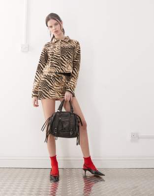 MOTEL OIWA WILD ANIMAL MINI SKIRT IN CREAM AND BROWN - PART OF A SET