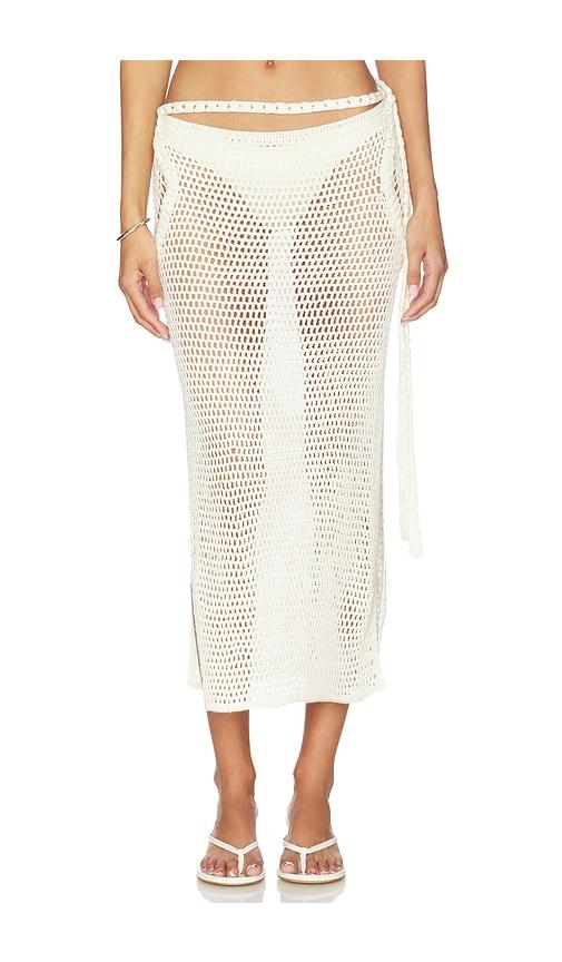 MY BEACHY SIDE DUNE HAND-CROCHETED MAXI SKIRT IN IVORY.