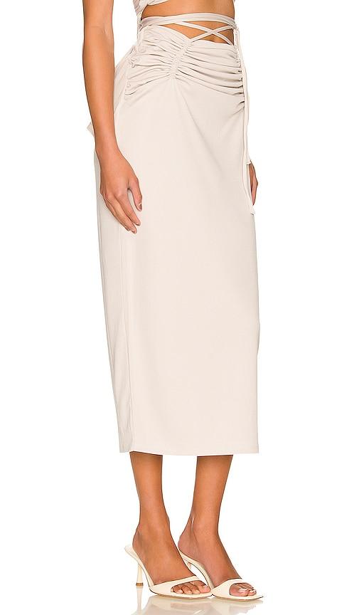 NBD AVIANA MIDI SKIRT IN BEIGE.