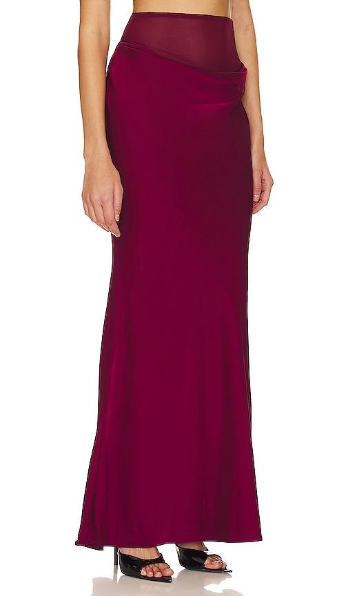 NBD ELENI MAXI SKIRT IN BURGUNDY.