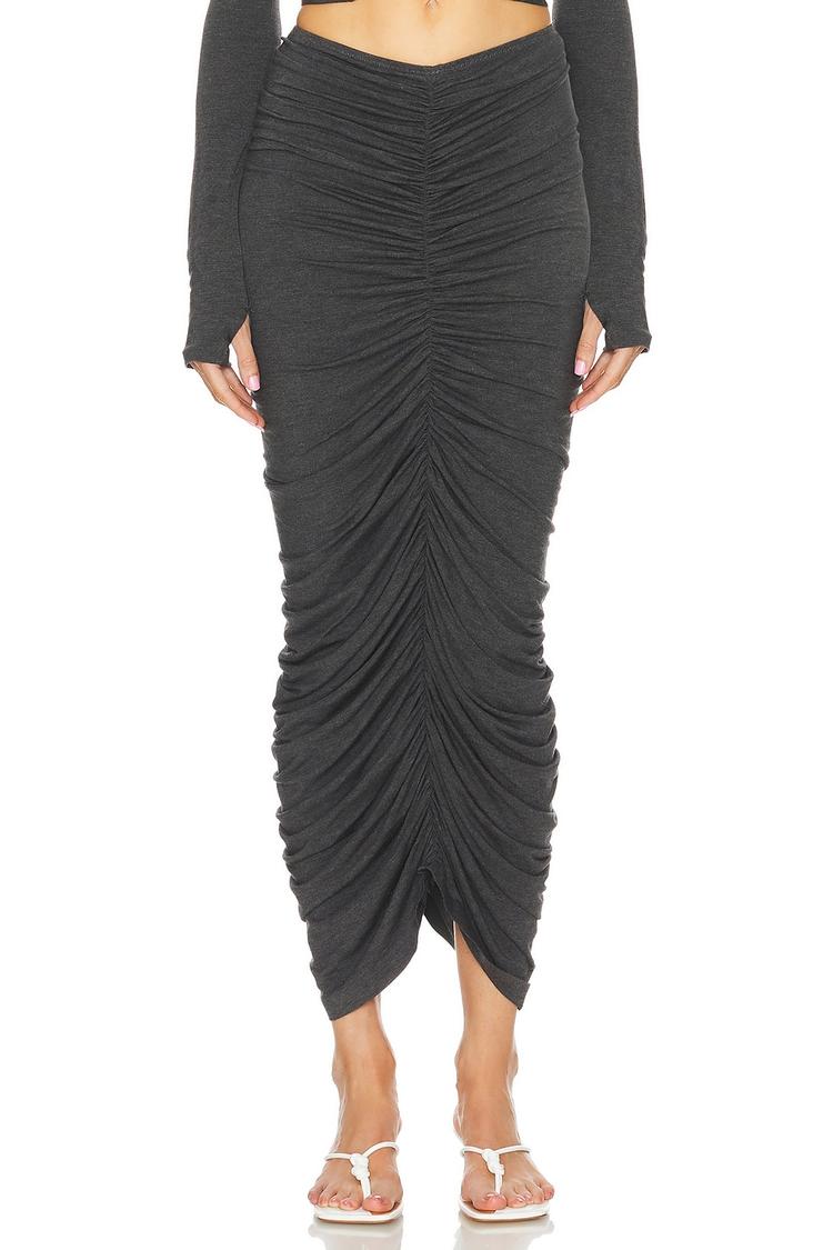 Effortless elegance meets everyday ease with Norma Kamali’s Shirred Long Skirt. Cut in sleek black jersey, the viscose blend embraces the body with intentional ruching that trails from the high waist to a dramatic, curved front hem. The pull‑on silhouette skims the frame while delivering all‑day comfort, making it perfect for everything from brunch to a city getaway. Pair with a cropped knit for a streamlined evening look or layer with a structured top for sophisticated daywear. A versatile, figure‑skimming staple that drapes with fluid movement and refined polish.