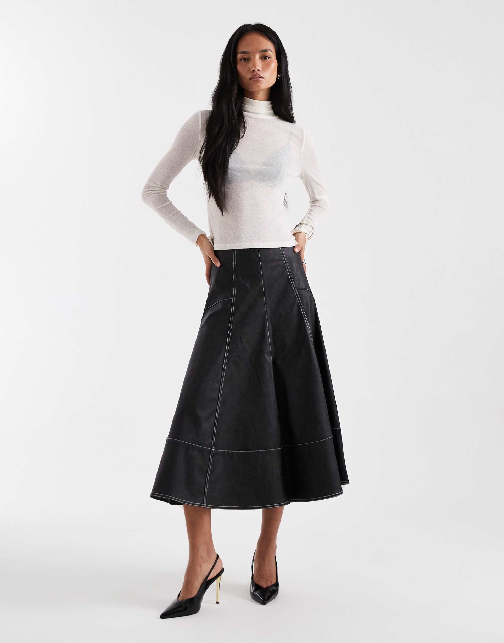 ONLY FAUX LEATHER PLEATED MAXI SKIRT IN BLACK