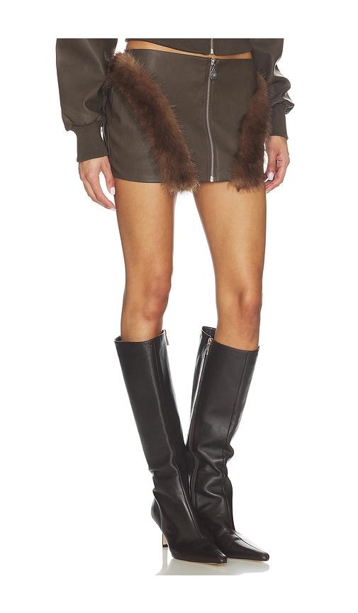 OW COLLECTION BELA FAUX FUR MINI SKIRT IN BROWN.