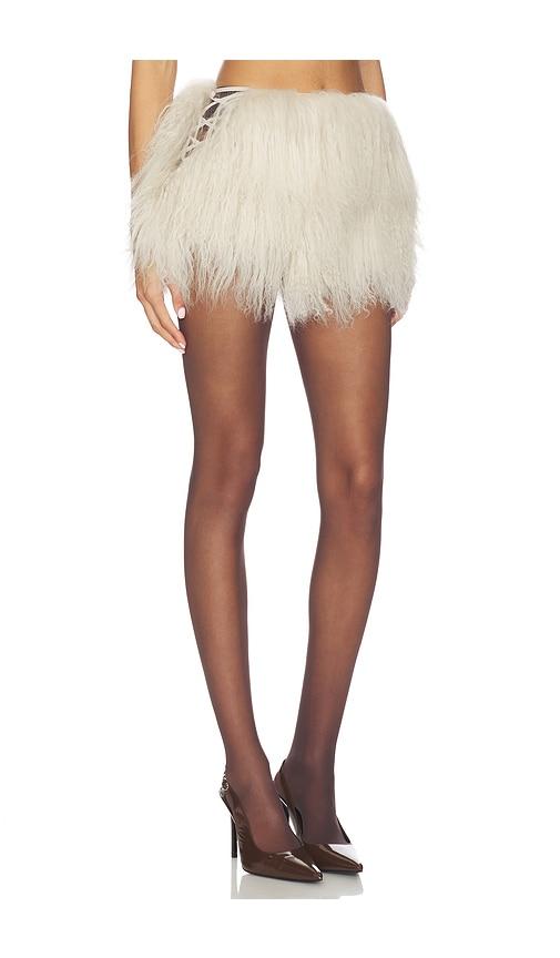 OW COLLECTION THEA MINI SKIRT IN BEIGE.