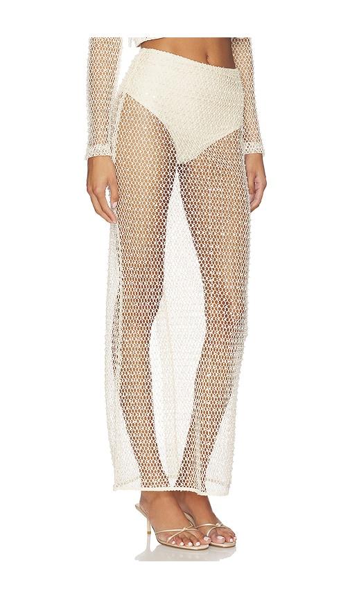 PATBO CROCHET BLOOM SKIRT IN BEIGE.
