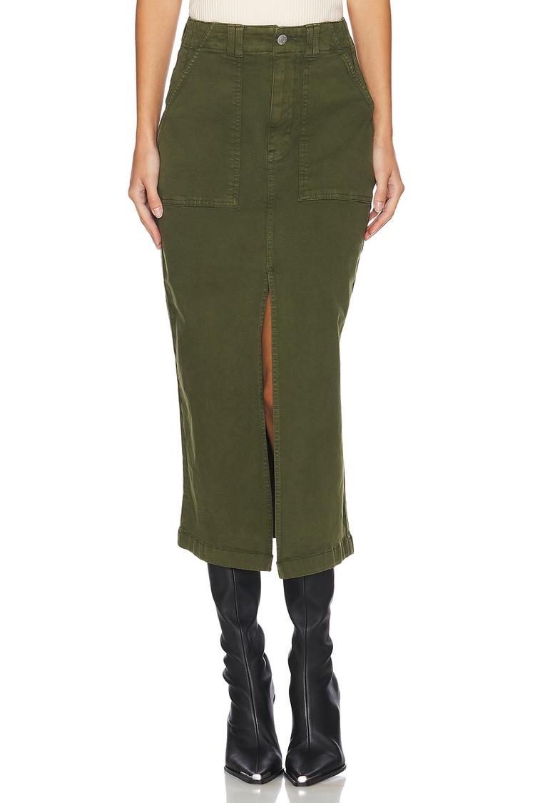 Redefine everyday polish with a pencil-skirt twist. Pistola Pamela in olive cotton twill sits at a flattering high waist and falls to a versatile midi length, ready for city commutes or weekend brunch. The fly zip with a tactile button creates a clean front while practical side pockets keep essentials close. A subtle front vent slit adds movement, and the fabric is midweight and breathable for all-season wear. Unlined for easy layering with knits, boots, or tailoring, this skirt anchors a modern, minimalist wardrobe with quiet confidence.