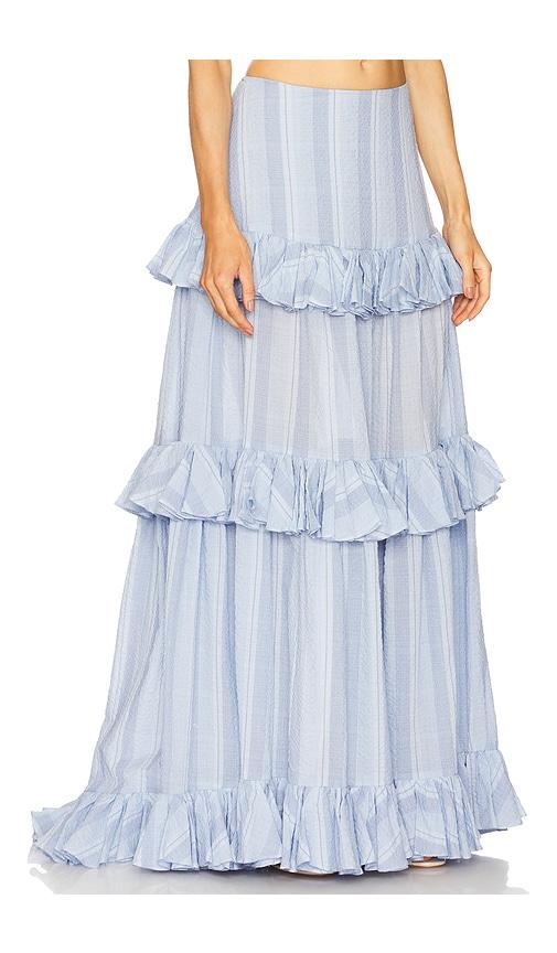 PRABAL GURUNG MAXI RUFFLE TIERED SKIRT IN BABY BLUE.