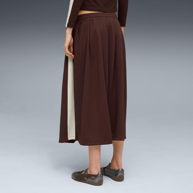 PUMA T7 WOMEN'S MIDI PLEATED SKIRT IN BROWN, SIZE L