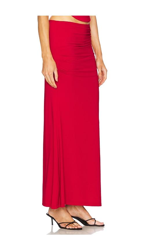 RUNAWAY THE LABEL TERRIE MAXI SKIRT IN RED.