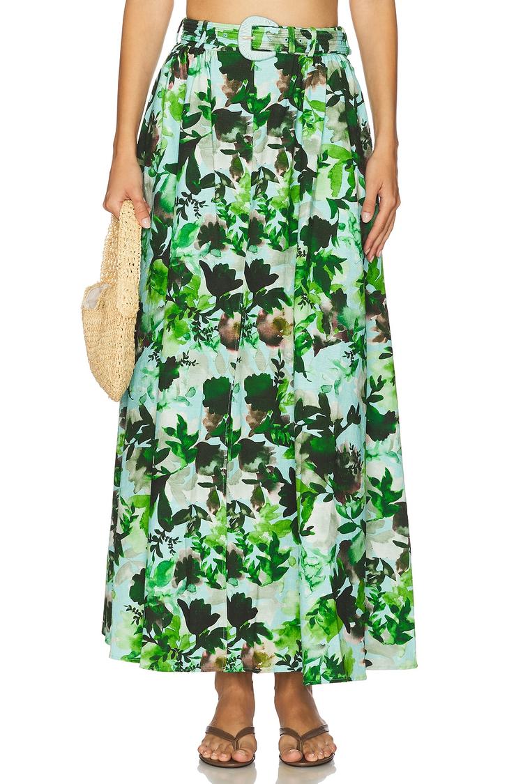 Effortlessly elegant and breezy, this Saloni Judi Skirt moves with the summer breeze in a botanical-green leaf print. Cut in lightweight cotton crepe with a fluid, maxi silhouette, it sits high at the waist and falls into a forgiving A-line that swishes with every step. A discreet side zipper holds the look clean, while an optional tonal belt lets you define the waist for a sharper line. The front slit delivers a touch of movement, perfect for brunches, vacations, or garden soirees. Pair with a simple tee or silky blouse for endlessly versatile styling.