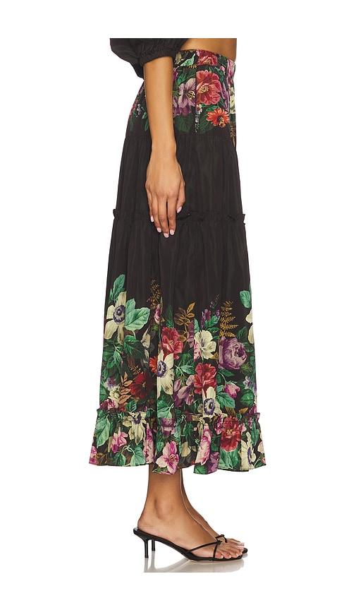 SEA VIKTORIA PRINT MIDI SKIRT IN BLACK.