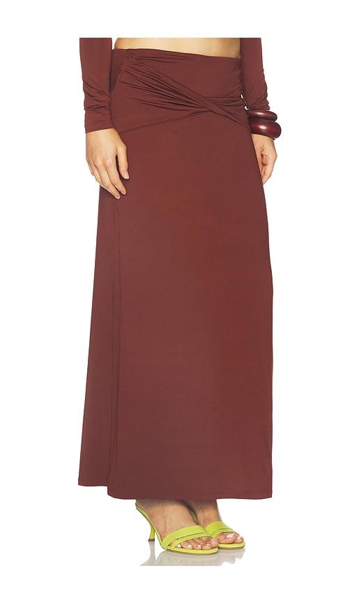 SEVEN WONDERS KAMILLA TWIST MAXI SKIRT IN CHOCOLATE.