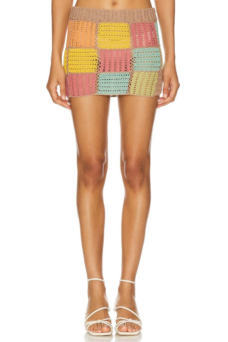 Effortless Bohemian charm meets modern summer ease in this Edith Patchwork Mini Skirt. Crafted in breathable cotton, the open-knit crochet unfolds into a playful colorblock tapestry of pastel pinks, blues, yellows, and mint. A pull-on, elastic waistband ensures a sleek, fitted silhouette that moves with you, while the mini length flashes sun-kissed legs. Unlined and intentionally sheer, it invites lightweight layering—ideal for beach days, brunch, or vacation strolls. Pair with a crisp blouse or bikini top for a versatile warm-weather staple that speaks to carefree, colorful style.
