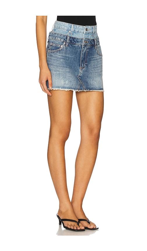 SIMKHAI SALIX DOUBLE WAISTBAND MINI SKIRT IN BLUE.