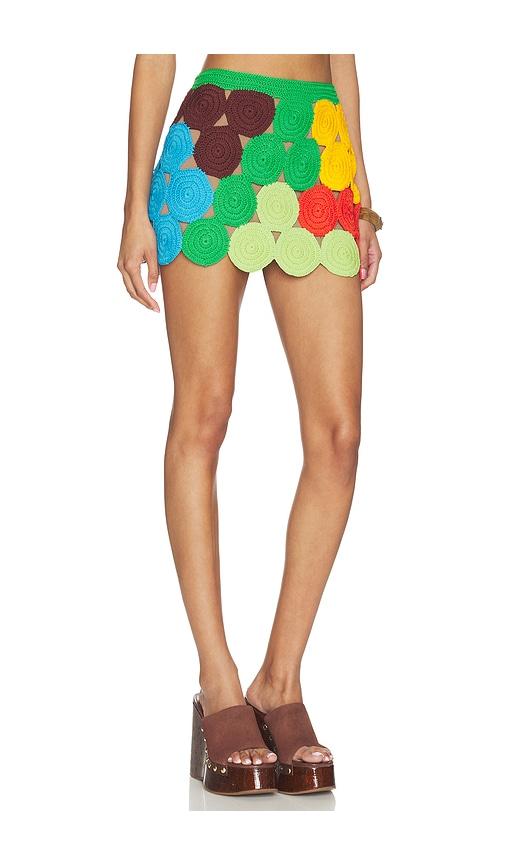 SIMONMILLER BEEP BEEP MINI SKIRT IN GREEN,BROWN.