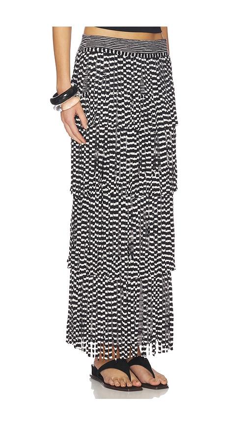 SIMONMILLER ZA ZA KNIT FRINGE SKIRT IN BLACK,WHITE.