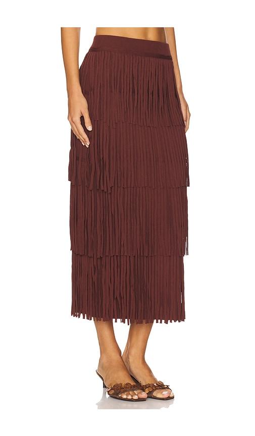 SIMONMILLER ZA ZA KNIT FRINGE SKIRT IN BROWN.
