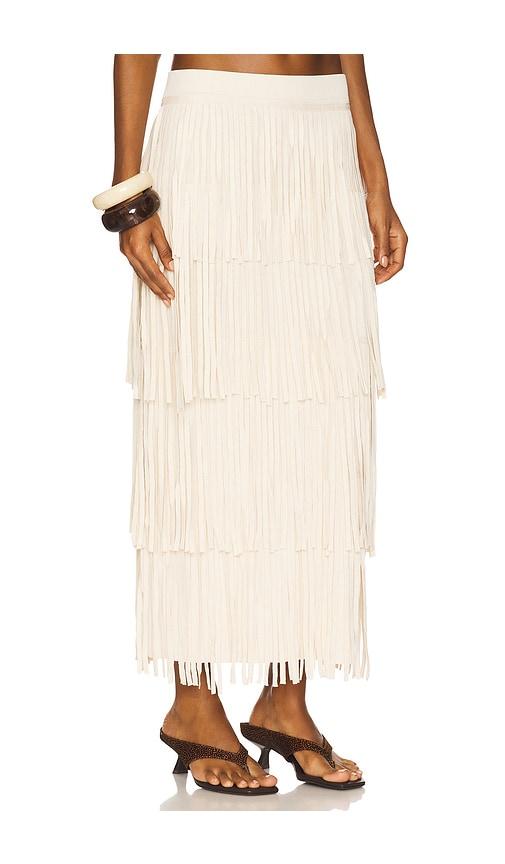 SIMONMILLER ZA ZA KNIT FRINGE SKIRT IN CREAM.