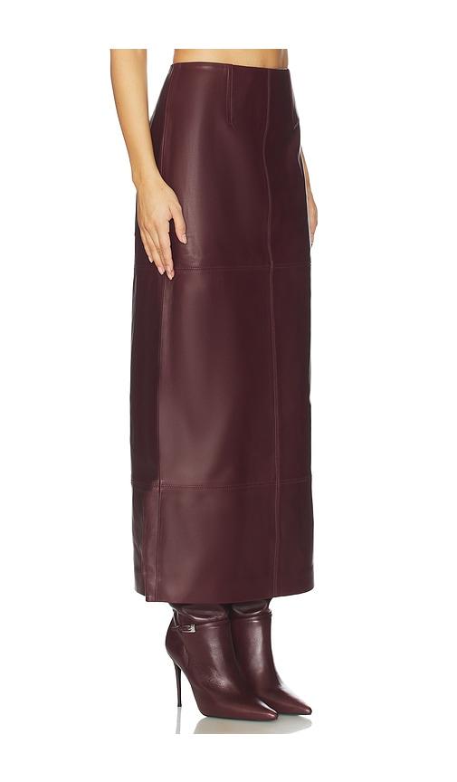 SRG MANGO LEATHER SKIRT IN BURGUNDY.
