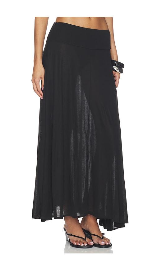 ST. AGNI FLUID JERSEY SKIRT IN BLACK.