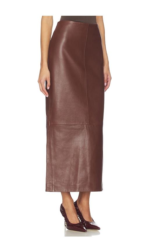 ST. AGNI LEATHER COLUMN SKIRT IN BROWN.