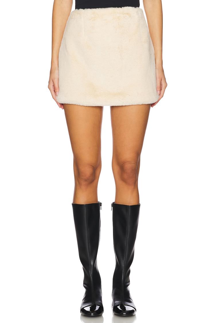 plush texture cream skirt for fall style