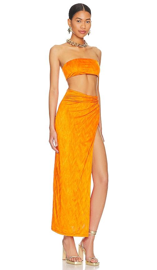 SUPERDOWN KAROLYNA MAXI SKIRT SET IN ORANGE.