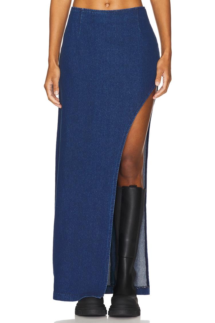 long denim skirt with leg slit