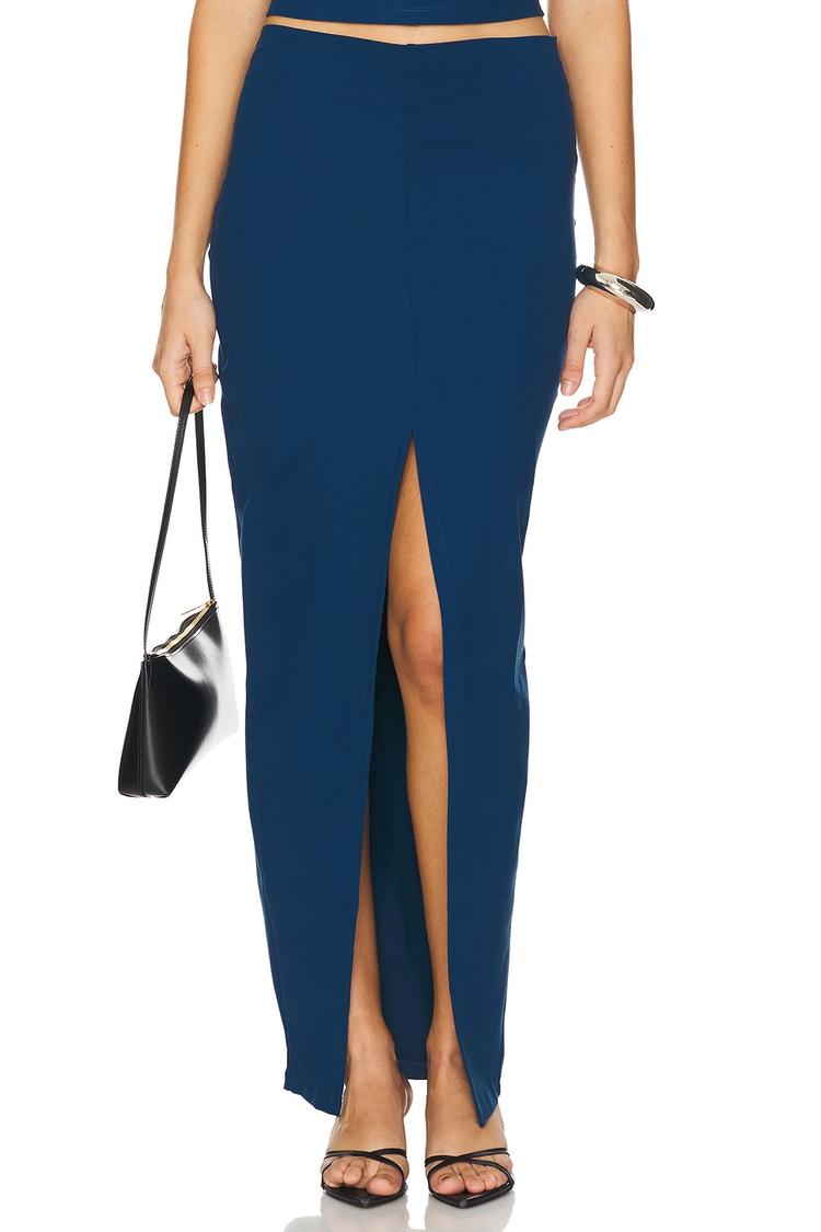 Effortless sophistication meets everyday ease in this navy open-front maxi skirt. Crafted from a sleek nylon-spandex jersey, it moves with you thanks to a stretchy Pull-On waistband and a flattering front vent that creates a subtle, leg-lengthening slit. The long, clean silhouette drapes beautifully over the hips for a polished, office-to-dinner look. Dress it up with heeled sandals and a silky blouse, or keep it casual with a tee and flats—this versatile piece is built for travel, brunch, and warm-weather adventures. A modern essential with understated, luxe appeal.