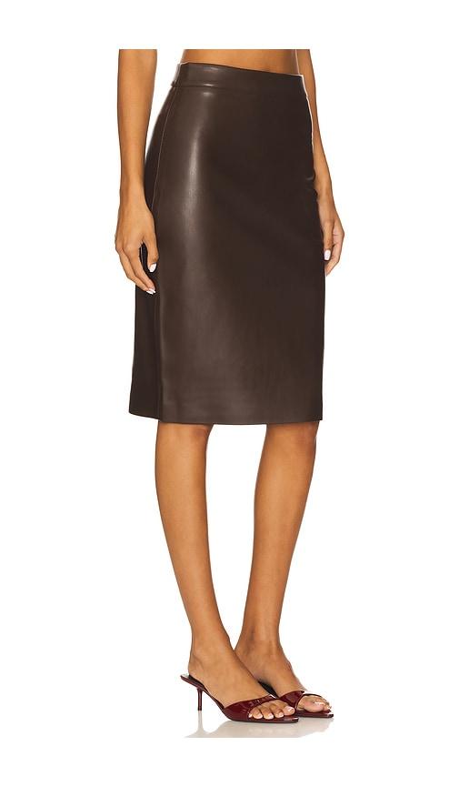 SUSANA MONACO FAUX LEATHER PENCIL SKIRT IN CHOCOLATE.