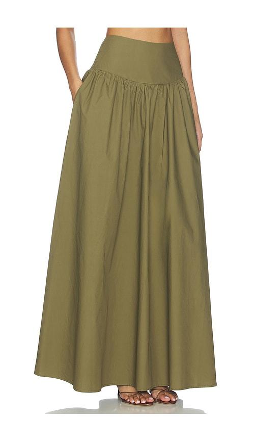 SUSANA MONACO X REVOLVE POPLIN DROP WAIST SKIRT IN OLIVE.