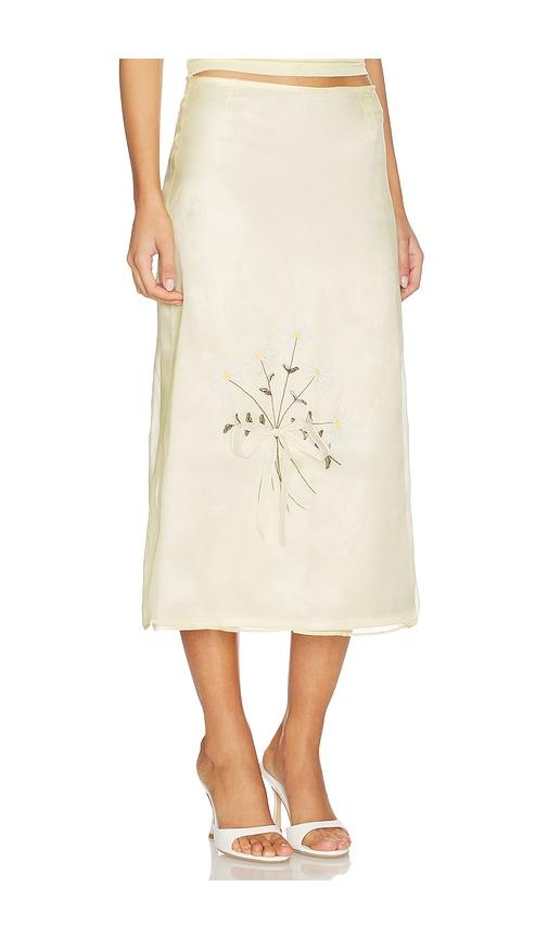 TANNER FLETCHER LISEL EMBROIDERED DAISY SKIRT IN YELLOW.