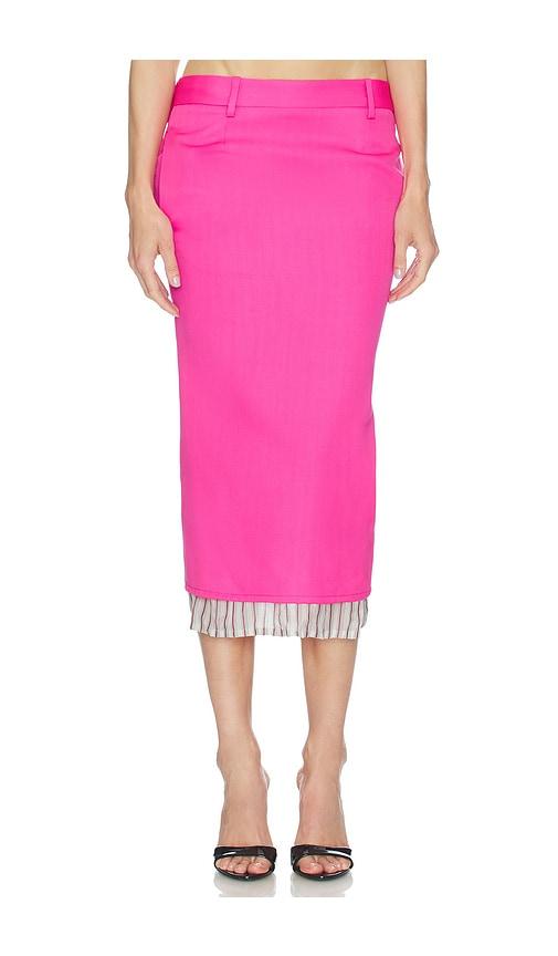 THE ATTICO LOW RISE MIDI SKIRT IN FUCHSIA.