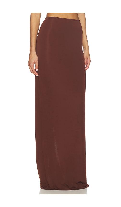 THE NEW ARRIVALS BY ILKYAZ OZEL ZADA JERSEY SKIRT IN BROWN.