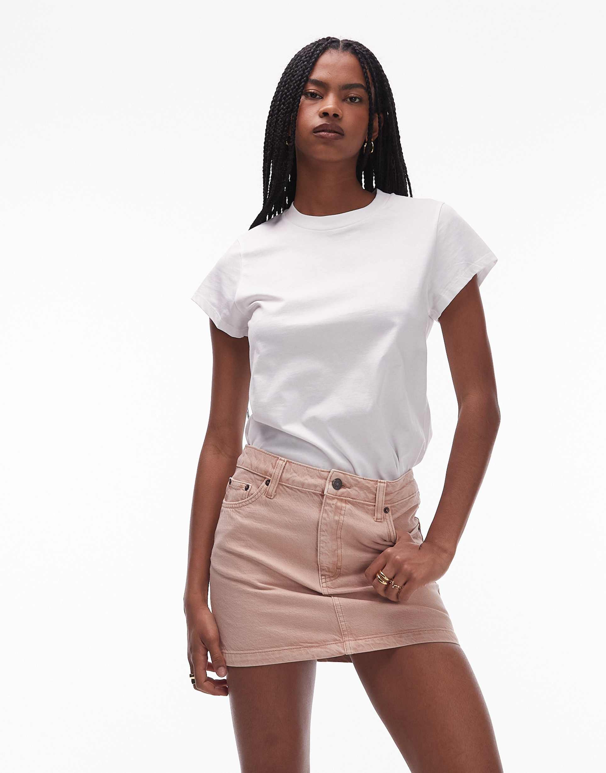 TOPSHOP DENIM PELMET MINI SKIRT IN BLUSH