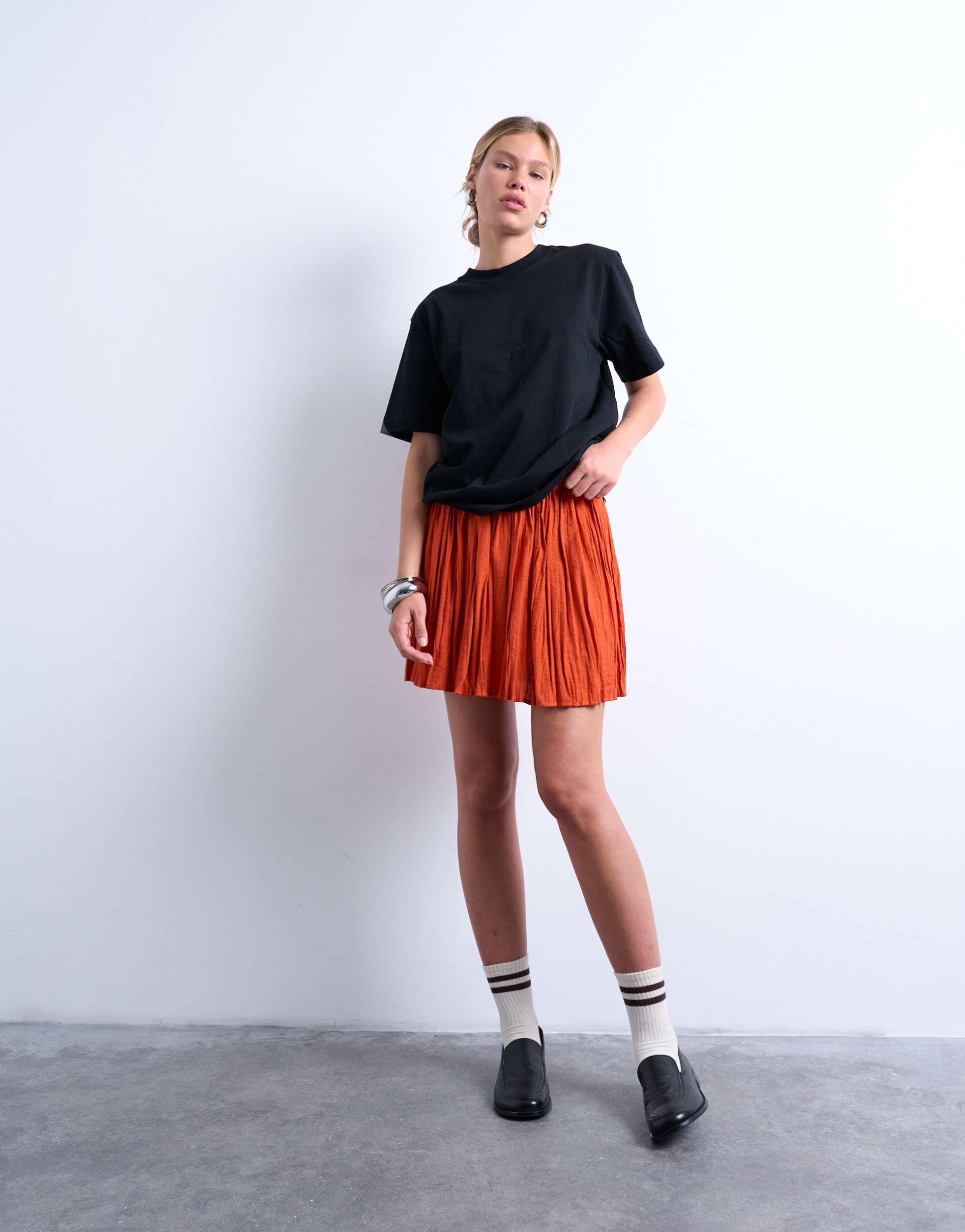 TOPSHOP FLIPPY CRINKLE MINI SKIRT IN DEEP ORANGE