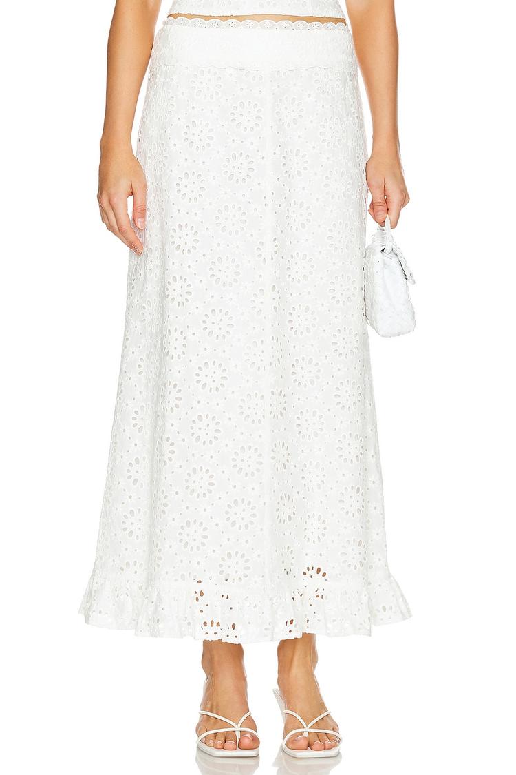 white cotton maxi skirt with eyelet embroidery