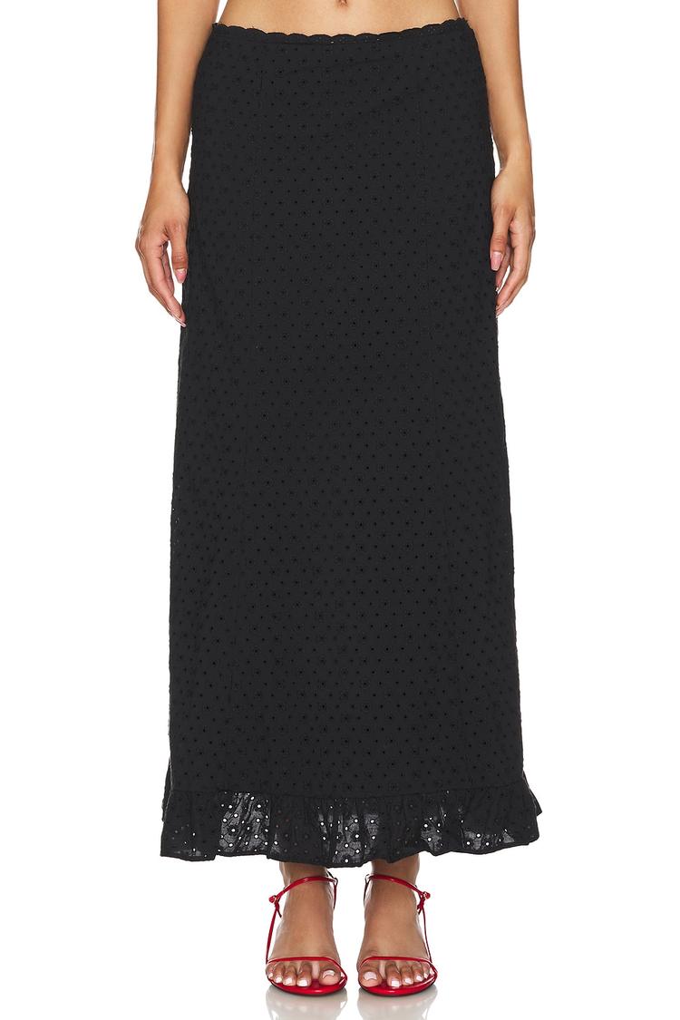 Introduce a touch of refined ease with the Lizzie Maxi Skirt by Tularosa. This eyelet cotton maxi drapes to a full length with a flattering A-line silhouette, lined in viscose for smooth coverage. A discreet side zipper keeps the clean line, while the scalloped hem and delicate eyelet texture add romantic texture to a versatile black foundation. Perfect for everything from sunlit brunch to evening dinners, it pairs beautifully with a tucked blouse, sandals, or heels. Timeless enough for every season, it captures laid‑back polish with modern, feminine detail.