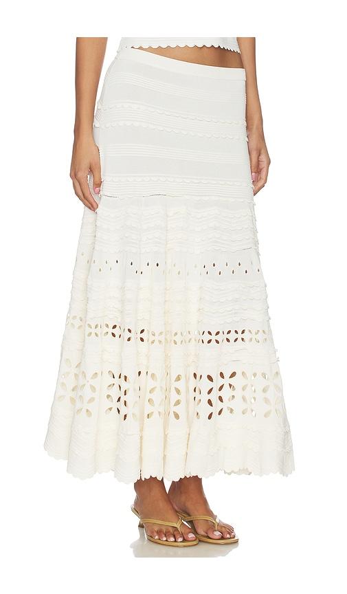 ULLA JOHNSON ANNISA EYELET KNIT SKIRT IN IVORY.