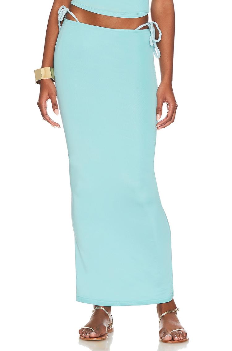 slim-fit blue maxi skirt for warm weather
