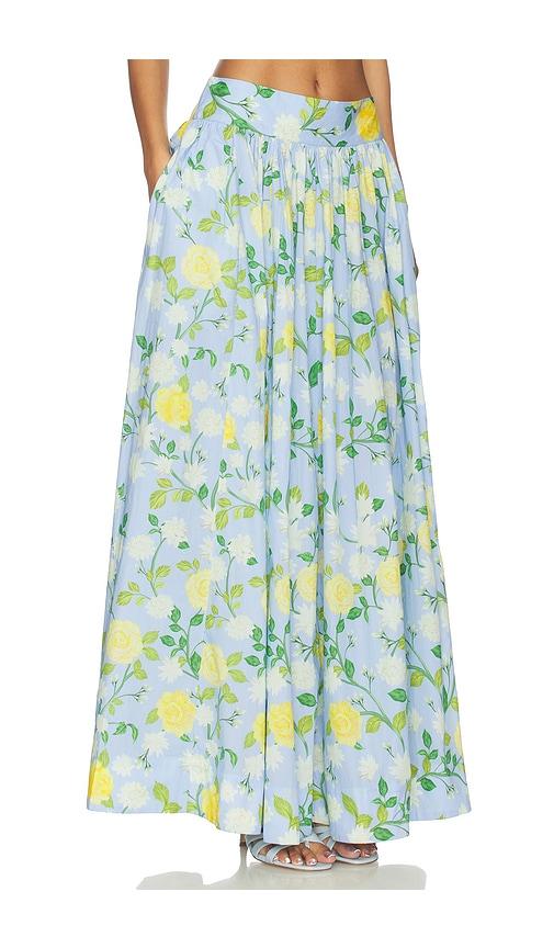 VERANDAH PANELED MAXI SKIRT IN BABY BLUE.