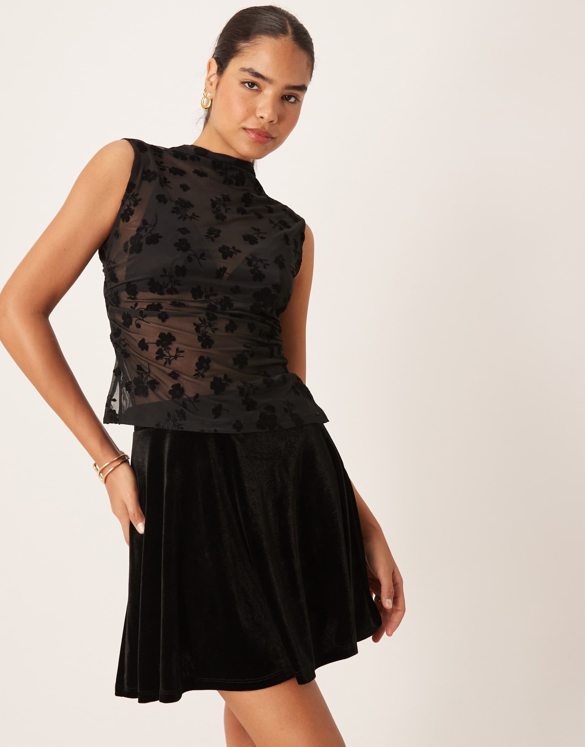 VILA VELVET FLIPPY MINI SKIRT IN BLACK