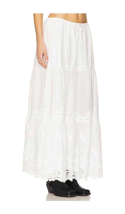 WEWOREWHAT MIDI PULL ON SKIRT IN IVORY.