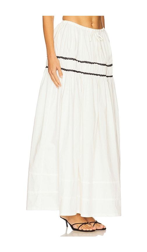 WEWOREWHAT TIERED MIDI SKIRT IN WHITE.
