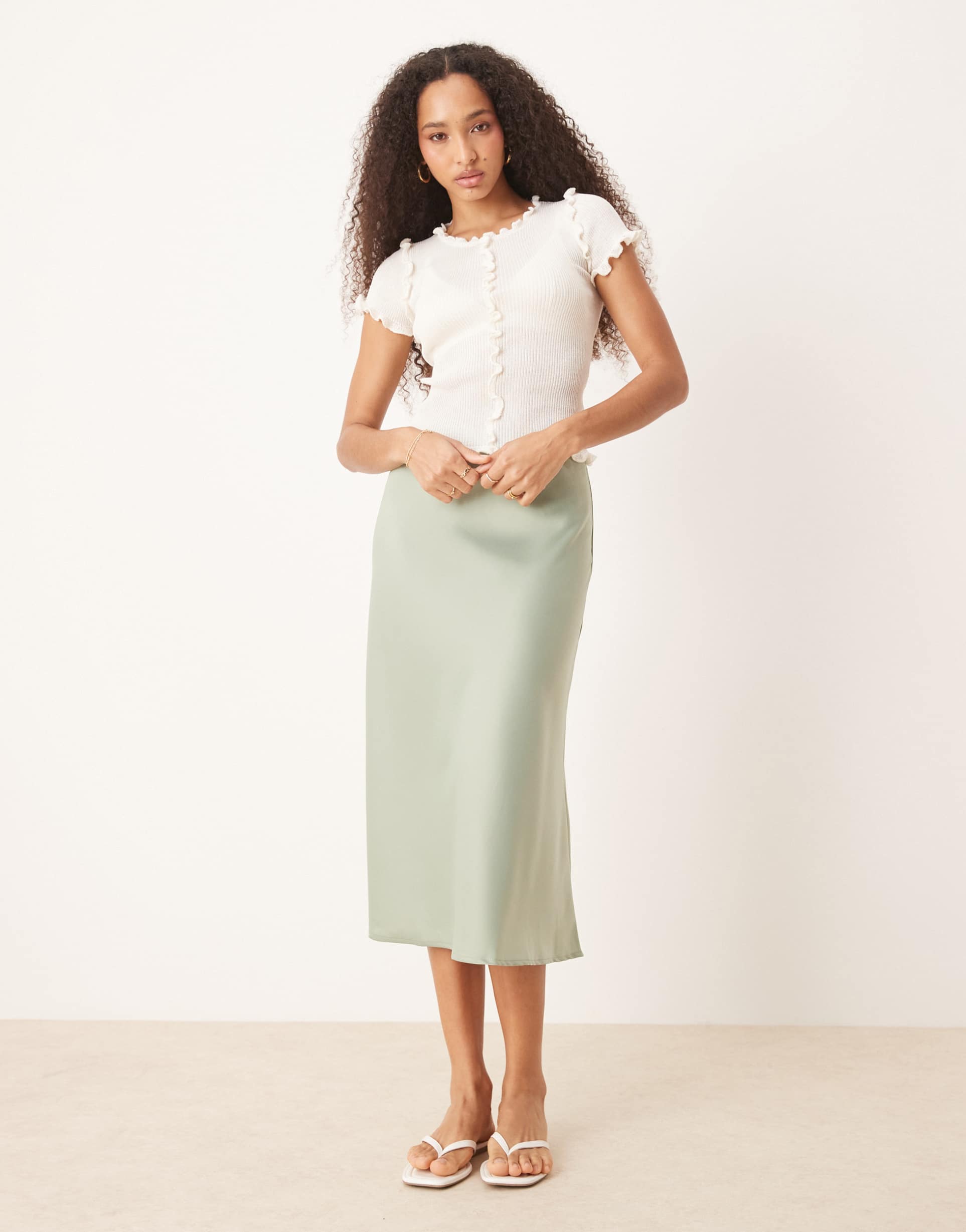 YAS SATIN MIDI SKIRT IN ICEBERG GREEN