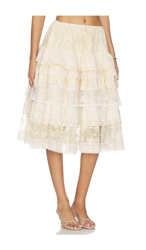 YUHAN WANG TIERED LACE RUFFLE SKIRT IN BEIGE.