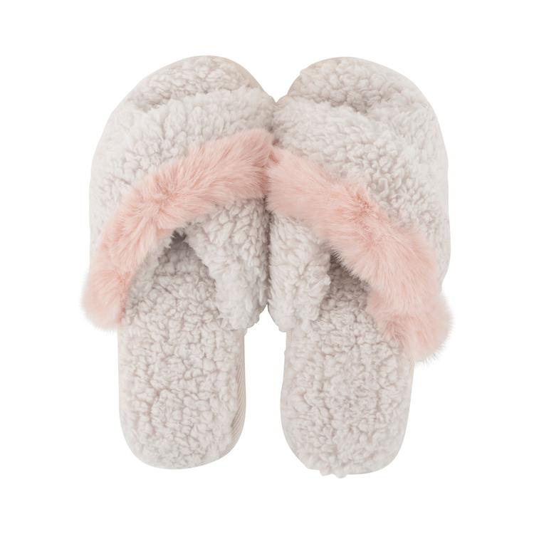 Available in Plus Size OPEN TOE / SANDALUPPER = 100% POLYESTER / LINING = 100% POLYESTER / SOLE = 100% TPR Available - S/M, M/L & L/XL Item Number: #414824 ". Plus Size Lemon Night In Berber Slide Slipper, in PALE PINK, SM/MD, Women's, Cacique for Lane Bryant