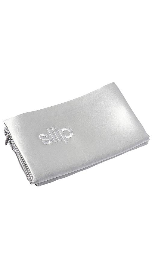 SLIP QUEEN/STANDARD PURE SILK PILLOWCASE IN SILVER IN METALLIC SILVER.