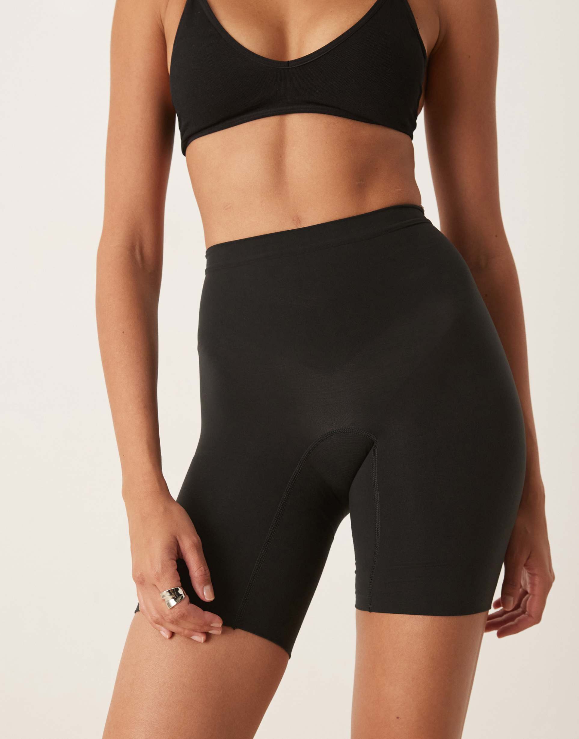 SPANXSCULPT SEAMLESS HIGH-RISE MID-THIGH POWER SHORTS WITH NON SLIP WAISTBAND IN BLACK