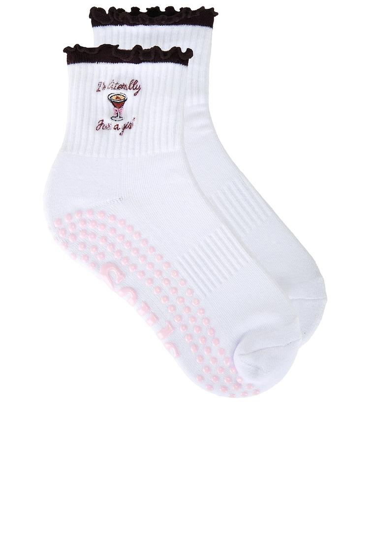 Complete your casual closet with a cheeky wink of personality. These white crew socks are crafted in a soft cotton blend (80% cotton, 10% elastic fiber, 10% spandex) for a breathable, flexible fit all day long. A playful brown embroidery reads 'I'm Literally Just A Girl,' while a pink dotted grip on the sole adds a pop of color and grip. The cuff features a contrasting black trim for a subtle edge. Perfect for comfy days at home, weekend errands, or gifting, these minimalist socks blend comfort with a wink of attitude.